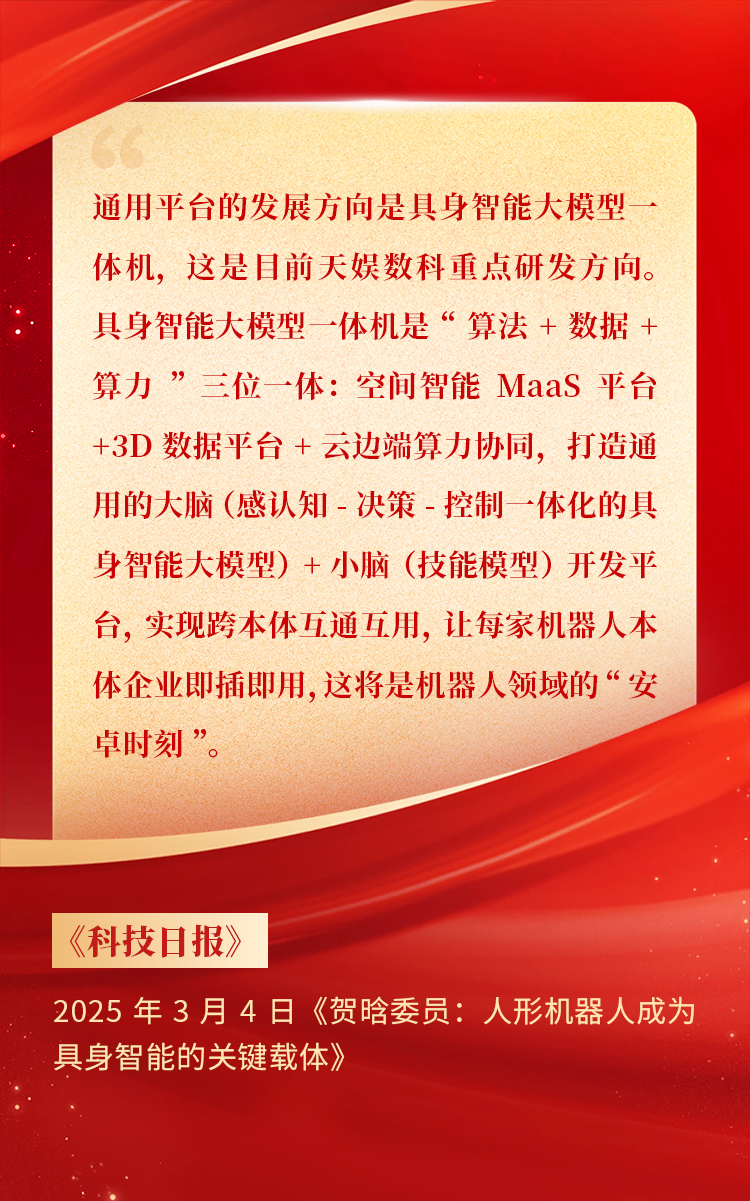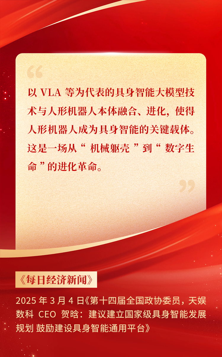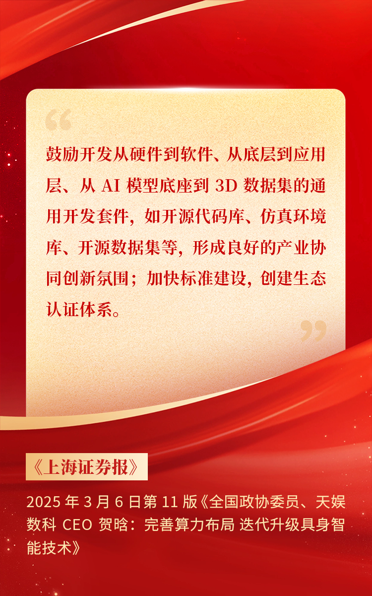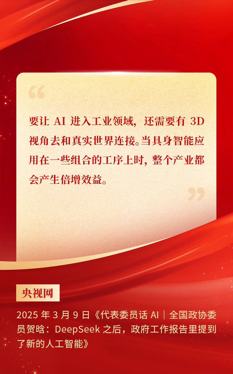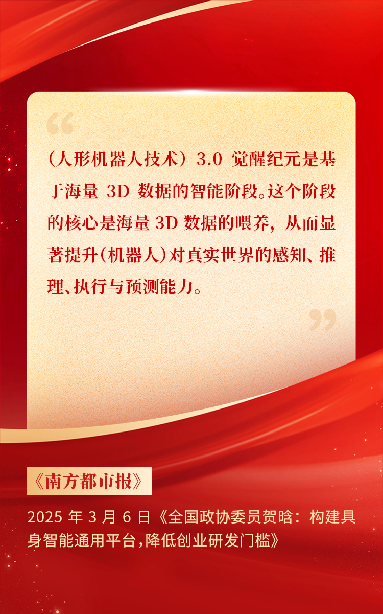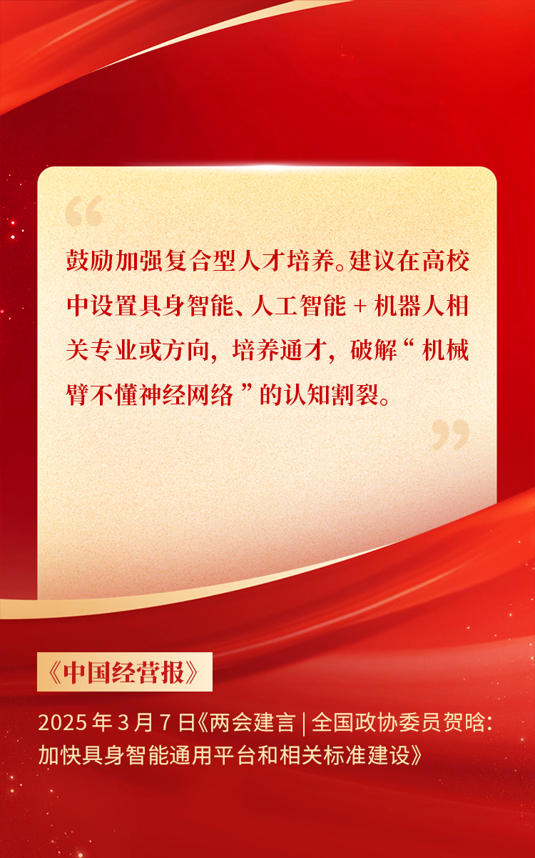 2025年3月10日下午,,,全国政协十四届三次会议于北京顺利闭幕。。。在今年的政府工作报告中,,,“科技”“技术”“创新”等词汇成了高频词,,,并且首次出现“具身智能”“6G”“智能机器人”等新词,,,强调“因地制宜发展新质生产力”。。。全国政协委员、、、波币钱包CEO贺晗连续第三年上会履职,,,围绕“具身智能”“人形机器人”“人工智能产业”等热词积极建言,,,受到了媒体的广泛关注,,,吸引了来自央视网、、、经济参考报、、、中国电子报、、、第一财经日报等央党媒体、、、主流财经等媒体记者的专访报道,,,让我们一起回顾贺晗委员两会建言!
